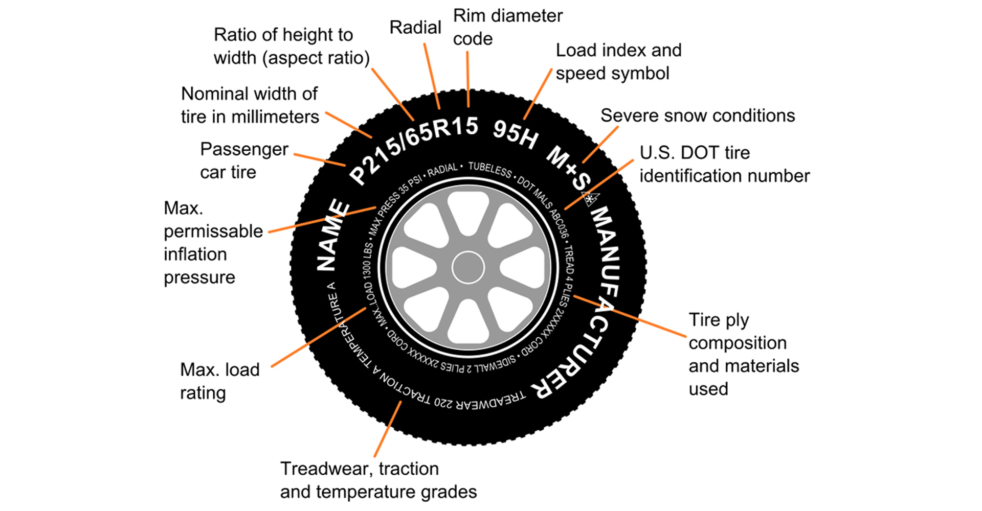 ตัวเลขและตัวอักษรต่างๆ ที่ปรากฏอยู่บนแก้มยางรถยนต์นั้น สามารถบ่งบอกถึงคุณสมบัติของยางได้หลายอย่างไม่ว่าจะเป็นขนาดของ ยาง เช่น หน้ากว้าง ซีรี่ส์ ขนาดขอบกระทะล้อ และยังบ่งบอกถึงขีดจำกัด ความเร็วสูงสุด, ดัชนีในการรับน้ำหนักของยางเส้นนั้นๆ รวม ไปถึงคุณสมบัติอื่นๆ อีกด้วยซึ่งคุณสมบัติ.